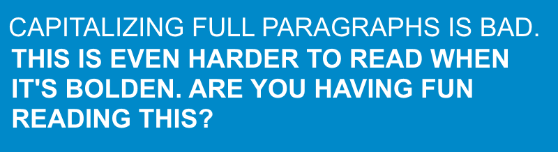 所以,除了大標題外,盡量不要所有文字都采用大寫字母,如果是正文中的小標題可以使用首字母大寫便可。