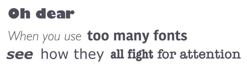 據(jù)調(diào)查表明,當一個頁面中使用的字體超過 3 種時,會給用戶帶來“不專業(yè)”、“沒有權威性”、“沒有層次結構”之類的感覺。